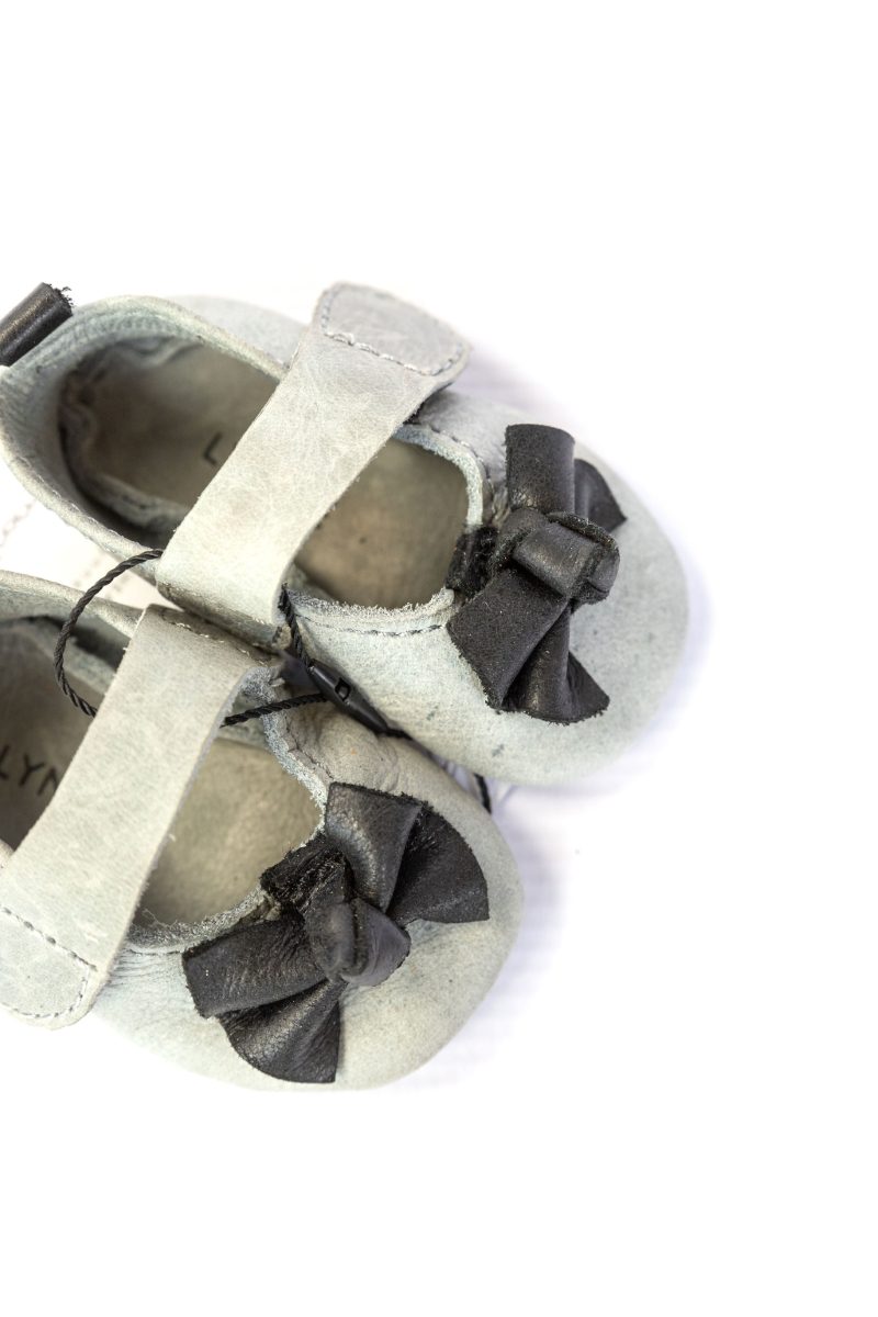 Grey leather with black bow Baby shoes