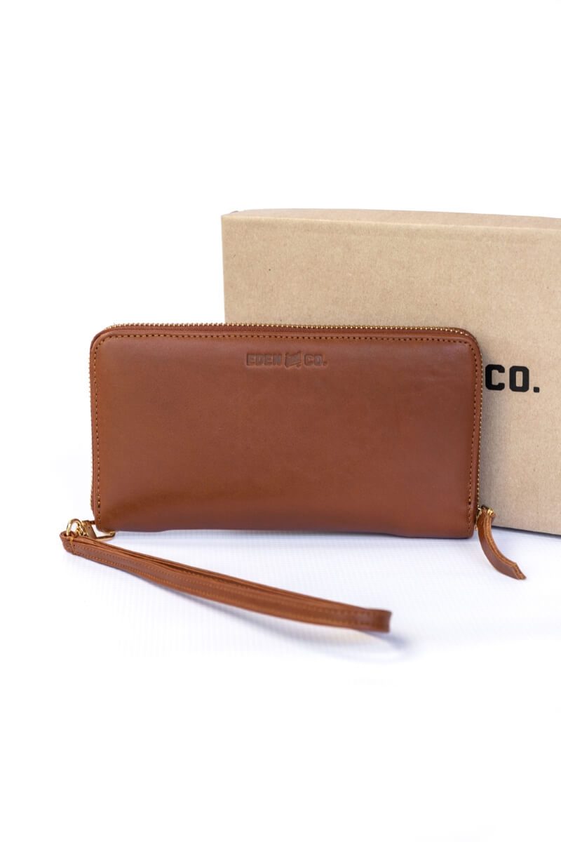 Eden and Co. tan leather wallet.